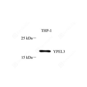 WB检测YPEL3蛋白(货号 GB114802). 样品: 经RIPA裂解液(货号G2002)处理的蛋白质. 封闭: 3%脱脂牛奶(货号GC310001)溶于TBST溶液, 室温孵育1小时. —抗: 1: 300稀释, 4℃ 孵育过夜. 二抗: HRP标记山羊抗兔IgG (H+L) (货号GB23303), 1: 5000稀释, 室温孵育1小时. |