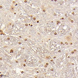 IHC检测YPEL3蛋白(货号 GB114802). 样品: 大鼠脑, 4%多聚甲醛 (货号G1101) 固定12-24小时. 抗原修复: Tris-EDTA抗原修复液(pH 9.0) (G1203), 98℃, 20分钟. —抗: 1: 900稀释, 4℃ 孵育过夜. 二抗: HRP标记山羊抗兔IgG (H+L) (货号GB23303), 1: 200稀释, 室温孵育1小时. |