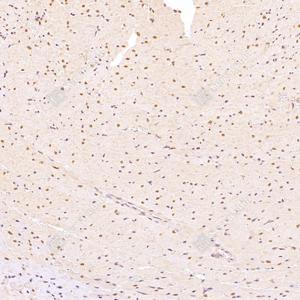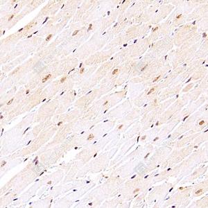 | IHC检测ZNF154蛋白(货号 GB112770). 样品: 小鼠心, 4%多聚甲醛 (货号G1101) 固定12-24小时. 抗原修复: Tris-EDTA抗原修复液(pH 9.0) (G1203), 98℃, 20分钟. —抗: 1: 4000稀释, 4℃ 孵育过夜. 二抗: HRP标记山羊抗兔IgG (H+L) (货号GB23303), 1: 200稀释, 室温孵育1小时. |