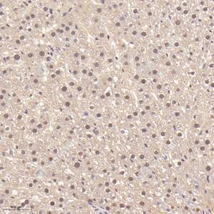 IHC检测ZNF410蛋白(货号 GB115234). 样品: 大鼠肝, 4%多聚甲醛 (货号G1101) 固定12-24小时. 抗原修复: Tris-EDTA抗原修复液(pH 9.0) (G1203), 98℃, 20分钟. —抗: 1: 600稀释, 4℃ 孵育过夜. 二抗: HRP标记山羊抗兔IgG (H+L) (货号GB23303), 1: 200稀释, 室温孵育1小时. |