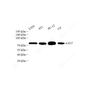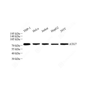 Atg7 is an E1-like enzyme that is specifically involved in autophagosome formation and is essential for autophagy. As an autophagic-related protein it is required for linking to Atg12, Atg5 and Atg8, which are essential for Atg conjugation and autophagosome formation. Atg7 has been reported as an important regulator of autophagy with starvation-induced or chemotherapeutic agent treatment. The high expression level of ATG7 is related to the survival of patients with breast cancer. There are several isoforms of ATG7 protein ranged from 68 kDa to 78 kDa.