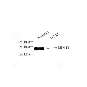 WB检测EHMT1/GLP蛋白(货号 GB112232). 样品: 经RIPA裂解液(货号G2002)处理的蛋白质. 封闭: 封闭: 3%脱脂牛奶(货号GC310001)溶于TBST溶液, 室温孵育1小时. —抗: 1: 500稀释, 4℃ 孵育过夜. 二抗: HRP标记山羊抗兔IgG (H+L) (货号GB23303), 1: 5000稀释, 室温孵育1小时. |