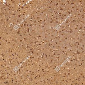 IHC检测VRK2蛋白(货号 GB115086). 样品: 小鼠脑, 4%多聚甲醛 (货号G1101) 固定12-24小时. 抗原修复: Tris-EDTA抗原修复液(pH 9.0) (G1203), 98℃, 20分钟. —抗: 1: 600稀释, 4℃ 孵育过夜. 二抗: HRP标记山羊抗兔IgG (H+L) (货号GB23303), 1: 200稀释, 室温孵育1小时. |
